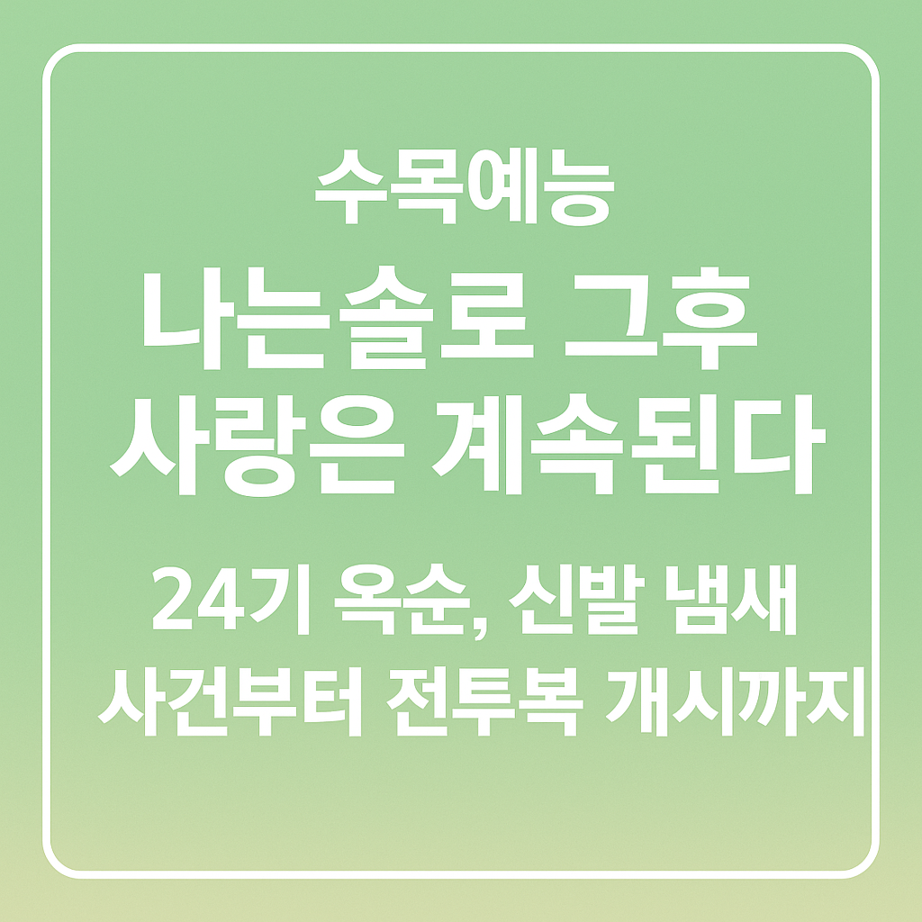 최근 방영된 SBS Plus ‘나는솔로 그후 사랑은 계속된다’(이하 나솔사계) 24기 편이 방송 직후 뜨거운 화제가 되고 있습니다. 그 중심에는 언제나 화제의 인물로 떠오르는 24기 옥순이 있죠. 이번 회차에서 옥순은 예상치 못한 돌발 행동과 솔직한 발언들로 출연자들뿐 아니라 시청자들의 반응을 극명하게 갈랐습니다.