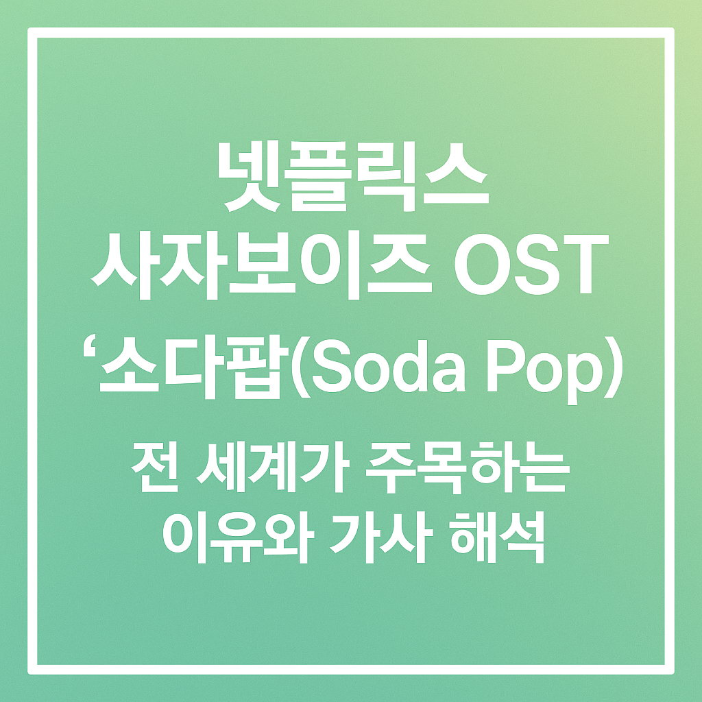 넷플릭스 애니메이션 의 OST 중 하나인 사자보이즈(Saja Boys)의 ‘소다팝(Soda Pop)’이 최근 전 세계 음악 팬들 사이에서 큰 화제가 되고 있습니다. 단순한 팝송을 넘어 영화적 맥락과 메시지가 담겨 있다는 점에서 많은 해석과 관심을 받고 있죠.