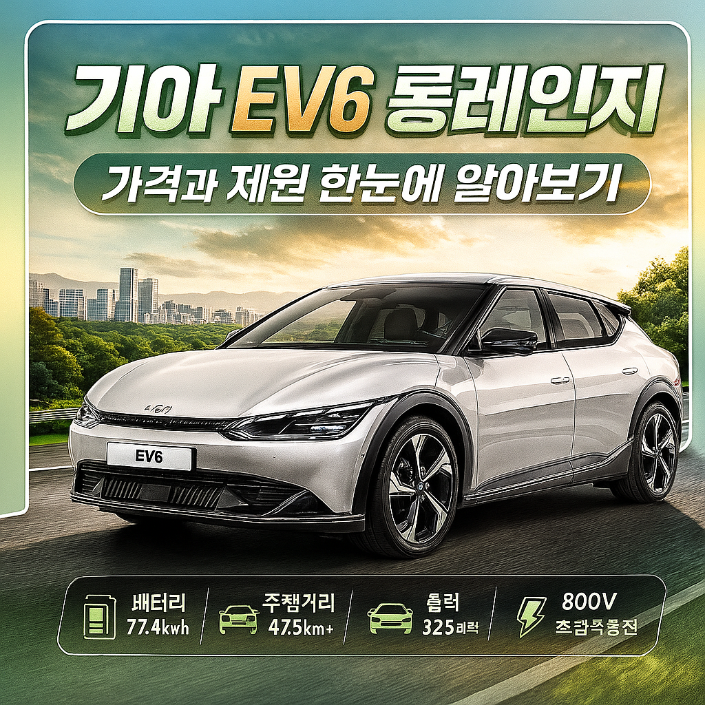 전기차 시장에서 기아 EV6 롱레인지는 높은 주행거리와 실속 있는 가격으로 많은 소비자들의 관심을 받고 있습니다. 아이오닉 5, 테슬라 모델 Y 등 경쟁 모델과 비교해도 뒤지지 않는 성능과 디자인을 갖추고 있어 패밀리카부터 세컨드카까지 다양한 활용이 가능한 점이 특징입니다. 오늘은 EV6 롱레인지의 가격, 세부 제원, 장점과 혜택까지 꼼꼼히 정리해 보겠습니다.