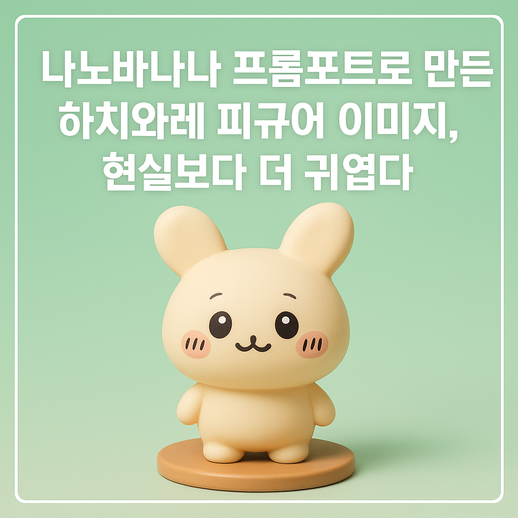 AI 이미지 생성 기술이 하루가 다르게 발전하는 요즘, ‘나노바나나(Nano Banana)’라는 이름을 한 번쯤 들어보셨을 겁니다. 최근 SNS를 중심으로 폭발적인 화제를 모으며 등장한 이미지 생성 모델인데요. 이번에는 이 나노바나나 프롬포트를 이용해 치이카와의 인기 캐릭터 ‘하치와레’ 피규어 이미지를 직접 생성해봤습니다.